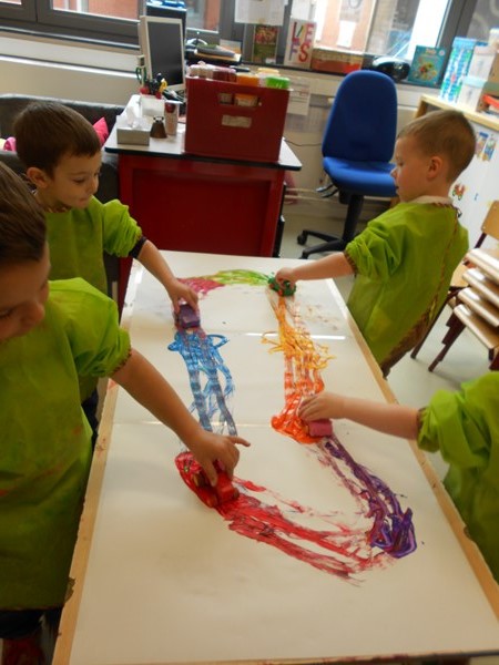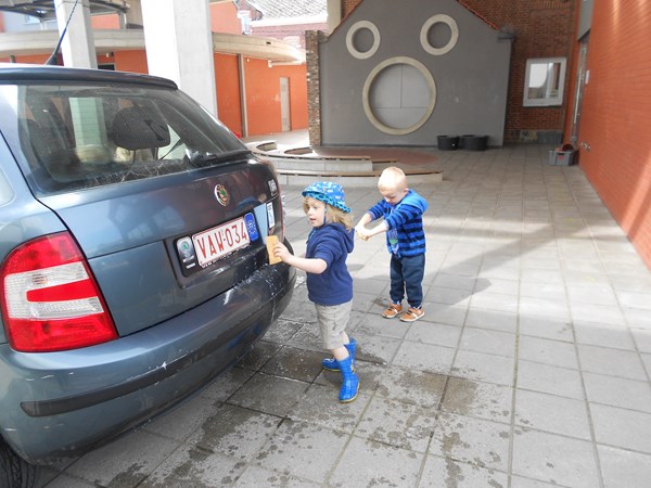 Vroem, vroem,.....rijden maar !Achiel ging skiën ;-)een zebrapad knippen en plakkenRijden met auto's door de verf....Wij wassen de auto van de juf !