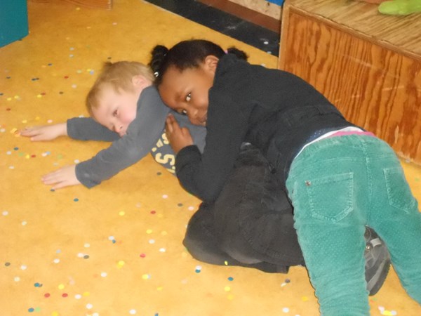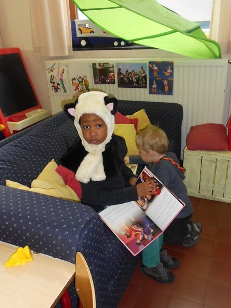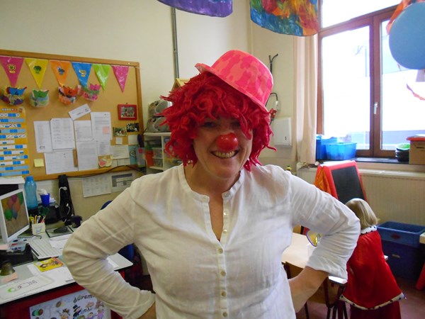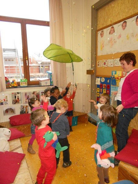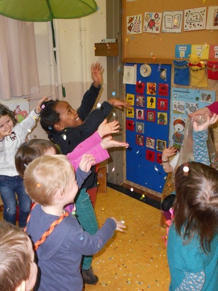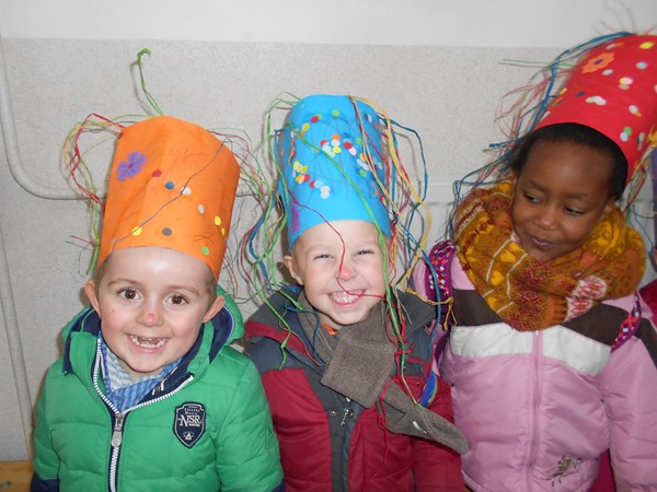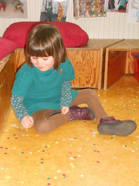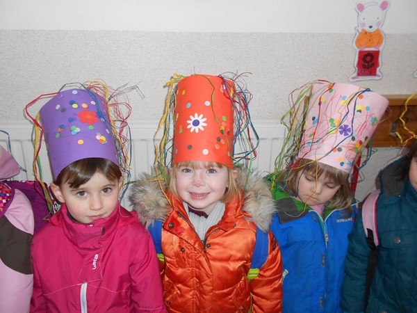 Wat zit er in de verkleedkist ?carnaval zonder confetti ?? No way ! ;-)even spelen op de i-padzelfgemaakte carnavalhoed !!