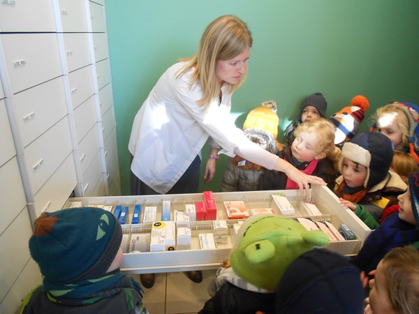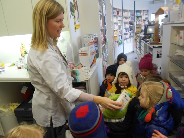 We brengen een bezoek aan de apotheek.