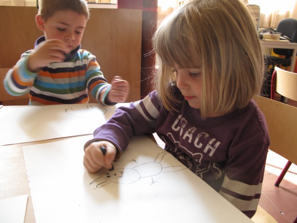 -de ganse dag zijn we wolven in de roedel en proberen ons aan de regels van de roedel te houden. Wolfjes die hun eigen zin willen doen, worden berispt. Gewillige wolfjes liggen met hun buikje naar boven.