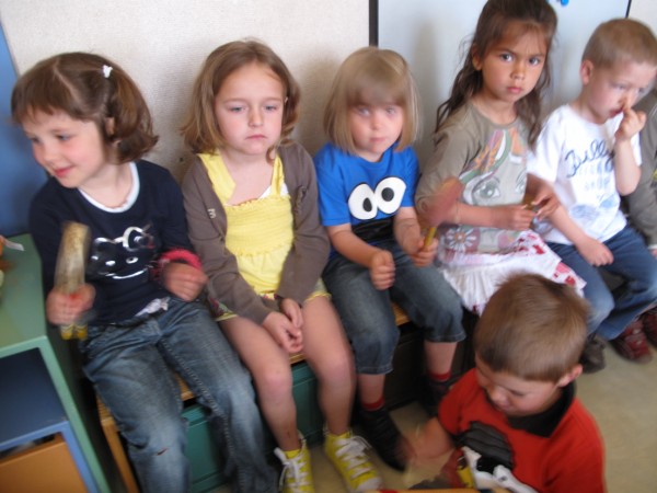 -de olifanten gehoorzamen allemaal aan kolonel Hatchi. Dat doen we ook. We maken een lange rij van olifanten door de klas en gehoorzamen aan de bevelen van de kuddeleider.